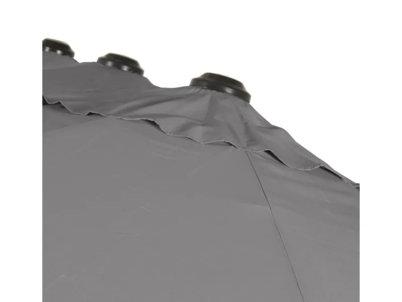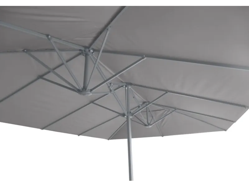 Um den Schirm bequem öffnen und schließen zu können, besitzt er eine Kurbelmechanik. Im aufgespannten Zustand besitzt er eine Größe von 460 cm in der Breite und 270 cm in der Tiefe. Die Höhe des Sonnenschirms beträgt maximal 247 cm.
