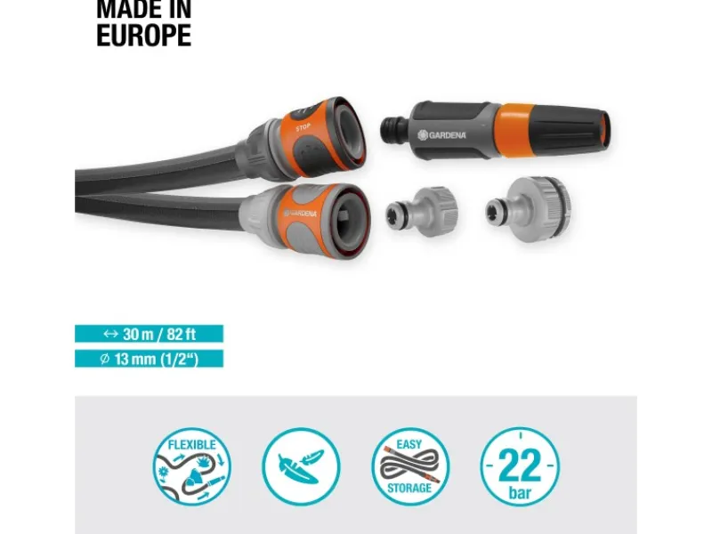 – 30 m langer Textilschlauch mit einem Durchmesser von 13 mm (1/2″)