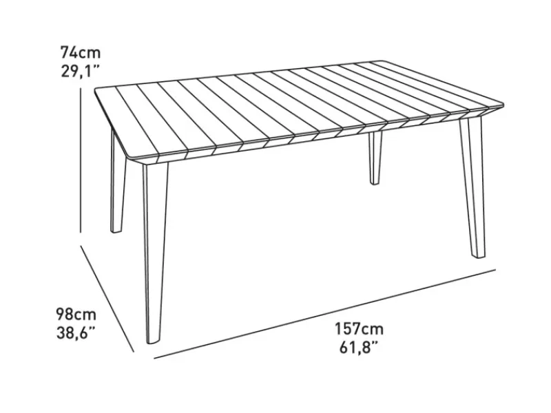 Produktmaße: L 157 cm – B 98 cm – H 74 cm