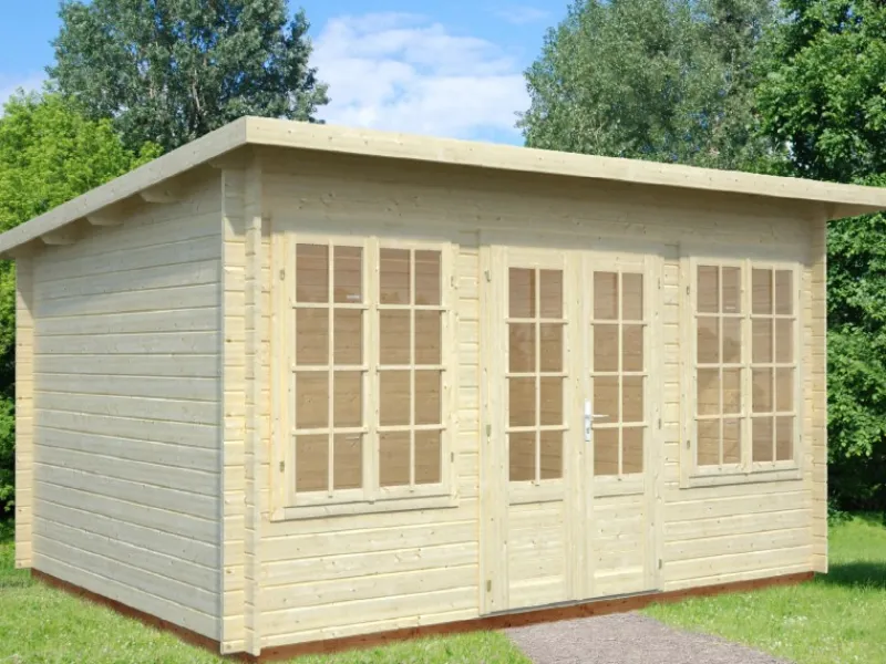 Das Gartenhaus aus Holz überzeugt durch sein modernes Design und ist dabei in schlichtem Natur gehalten. Es eignet sich für den universellen Einsatz als Geräteschuppen, Gartenpavillon oder Freizeithaus.
