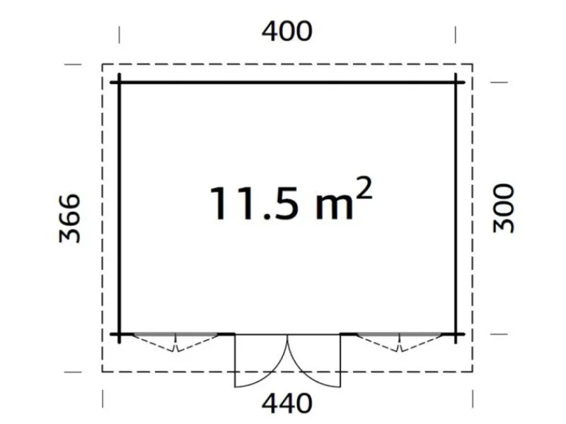 Sockelmaß Haus ohne Außenfläche B x T: 400 x 300 cm