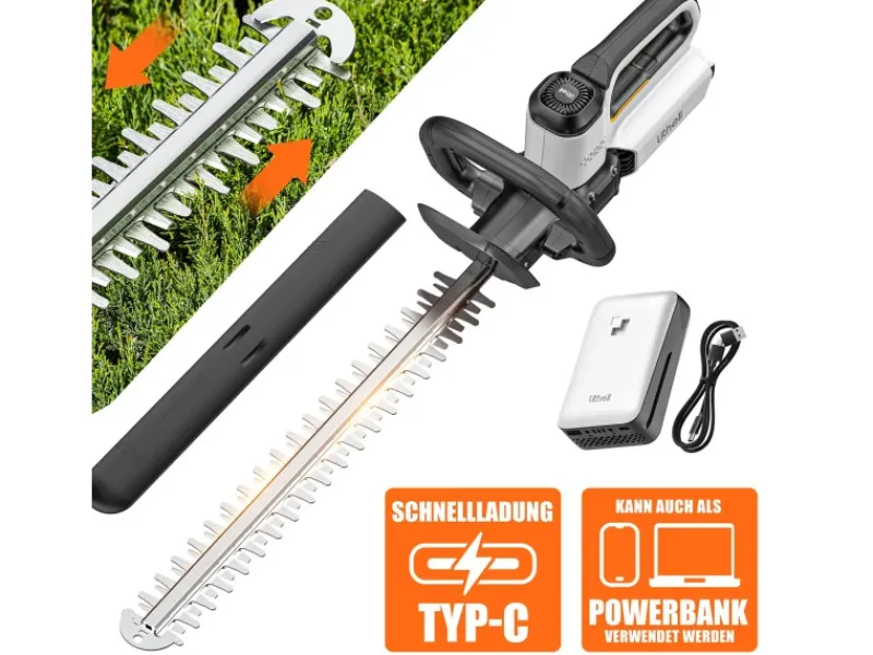 Die Litheli U20 Akku-Heckenschere 20V EGT040070 ist mit extrem harten Stahlklingen ausgestattet, die ein effizientes Schneiden ermöglichen. Der Metallschutz am Messerende verhindert, dass die Klinge durch Zusa mmenstöße mit Wänden oder harten Gegenständen beschädigt wird.