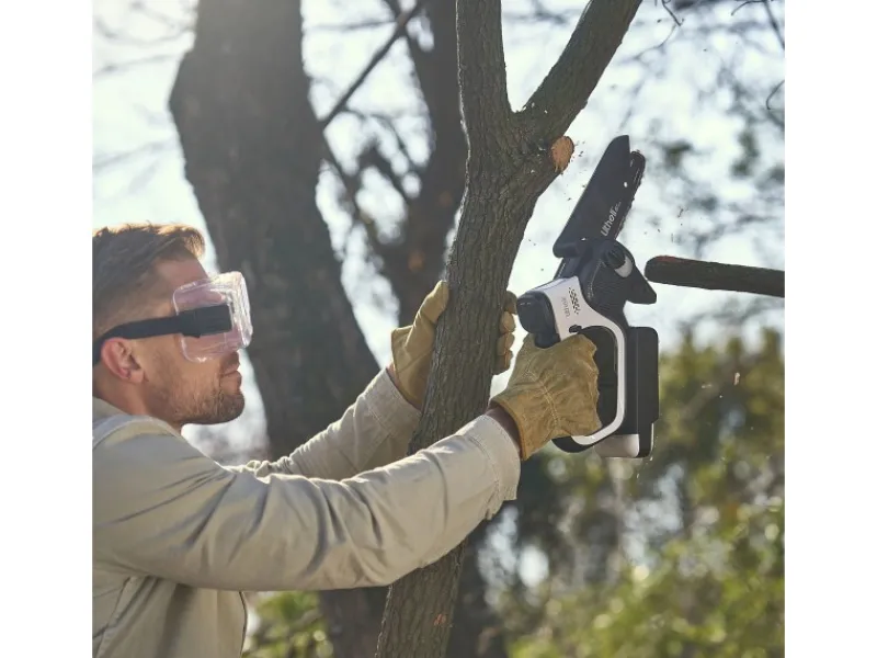 Akku-Säge mit Doppelsperrschalter für sicheres Gärtnern