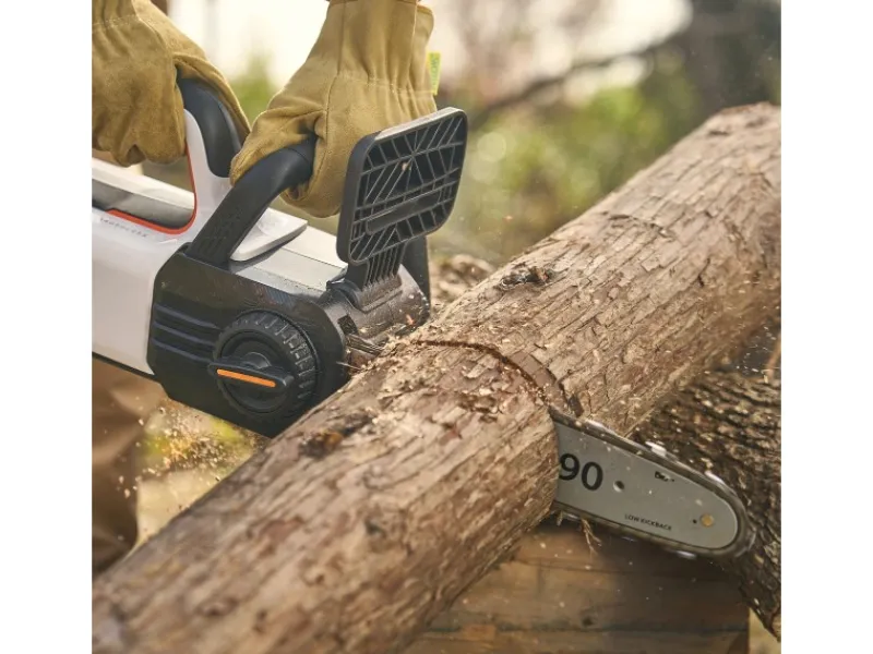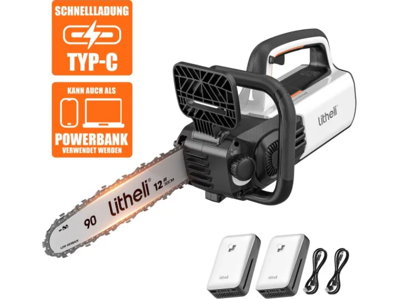 Das automatische Kettenschmiersystem sorgt dafür, dass die Kettensäge i mmer in bestem Zustand ist, um eine optimale Leistung zu erbringen, ein leichtes und effizientes Schneiden zu ermöglichen und die Lebensdauer zu verlängern. Die Sägespäne werden bei diesem Gerät optimiert abgeleitet, wodurch die Effizienz des Schneidens verbessert und die Arbeitsumgebung sauberer gehalten wird. Um Sicherheit und Zuverlässigkeit zu gewährleisten, kann die Kette durch Drücken des Bremshebels innerhalb von 0,12 Sekunden angehalten werden. Die Litheli U20 Akku-Kettensäge 2x20V EGT050074 besitzt einen ergonomisch gestalteten Griff, der einen bequemen und rutschfesten Halt bietet.