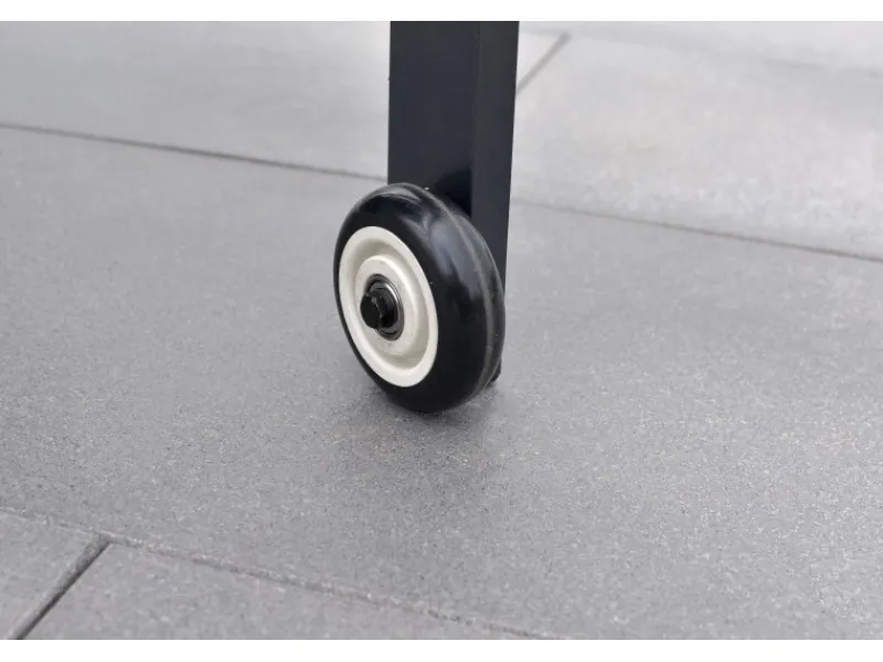 Für einen einfachen Transport verfügt die Liege über zwei Rollen am Kopfteil. Ergänzt wird das Set durch einen Beistelltisch, auf dem Sie bequem Ihre Tasse, Ihr Glas oder ihre Zeitung abgelegen können.