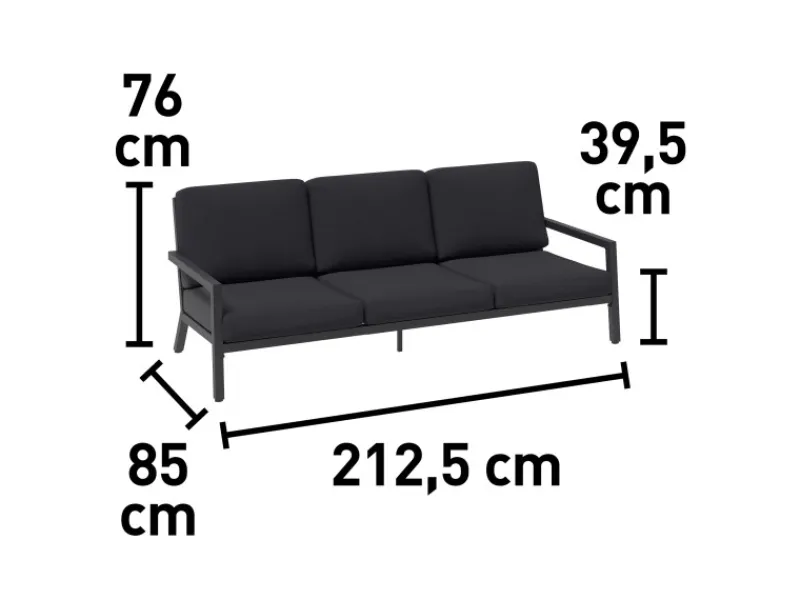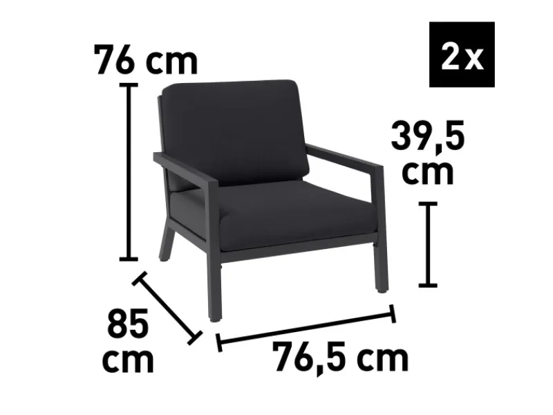 Stabilität durch eine max. Belastbarkeit von 110 kg (Lounge-Sessel) bzw. 295 kg (3-Sitzer)