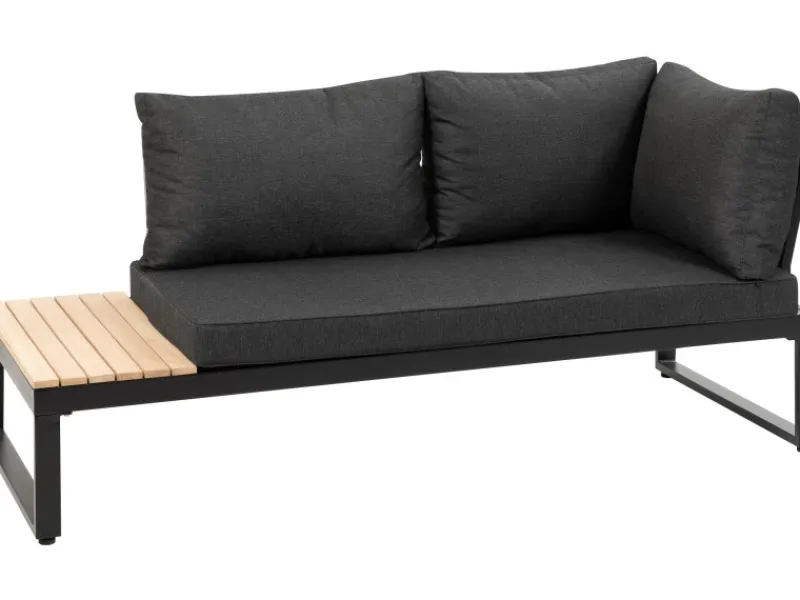 Gefertigt ist das stilvolle Stück aus einem leichten, schwarzen Aluminiumgestell, das mit seiner Langlebigkeit sowie der hochwertigen Pulverlackbeschichtung überzeugt. Diese macht das Möbelstück extrem widerstandsfähig gegenüber Kälte, Wärme, Feuchtigkeit und Kratzern. Die gemaserten Latten von Tischplatte und Tabletts bestehen edel anmutendem Akazienholz, das sich durch seine Festigkeit, Widerstandsfähigkeit und Robustheit auszeichnet. Durch regelmäßige Behandlungen mit Holzpflege-Öl bleibt das besondere Etwas des Produkts länger erhalten.