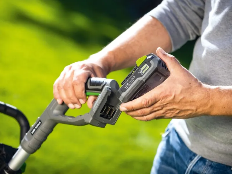 Der Akku-Rasentrimmer gehört zum LUX 1 PowerSystem und kann mit einem zu dieser Serie gehörenden 20 V (18 V nominal) Lithium-Ionen Akku, der über 2 Ah oder 4 Ah verfügt, betrieben werden. Dieser bietet eine Gerätelaufzeit von ca. 30 Minuten. Der benötigte Akku und die Ladestation sind nicht im Lieferumfang enthalten.