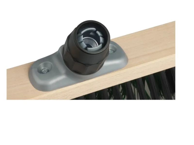 Der Besenkopf verfügt über ein universelles Stielloch zur Aufnahme von Besenstielen mit einem Ø von 24 mm – 26 mm. Empfohlen wird eine Stiellänge ab 120 cm. Der Besenstiel ist separat erhältlich. Im Lieferumfang ist ein Riegel mit Borsten und Stielverbindung enthalten.