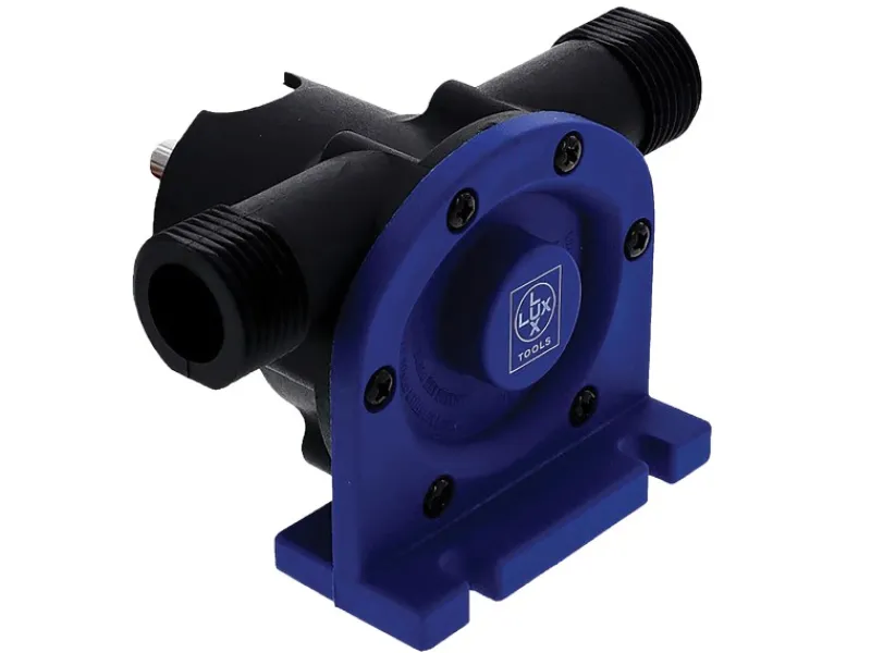 Die LUX-TOOLS Bohrmaschinenpumpe 3000 mit einem Schlauchanschluss von 13 mm (1/2″) und einem Gewindeanschluss von 19 mm (3/4″) hat eine Ansaughöhe von 4 m, saugt selbst an und weist einen Trockenlauf von 30 s auf, der max. Druckaufbau liegt bei 4 bar. Nicht verwendbar für brennbare Flüssigkeiten.