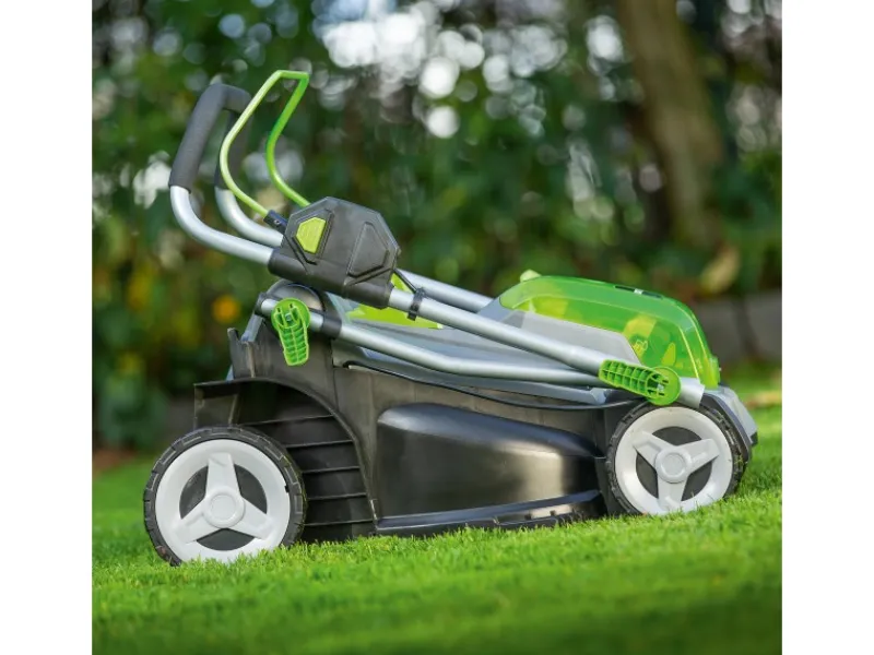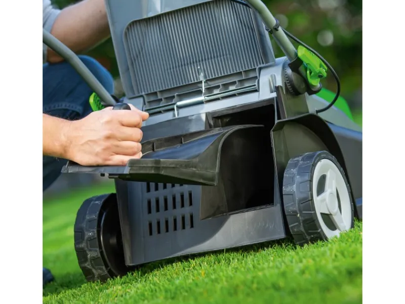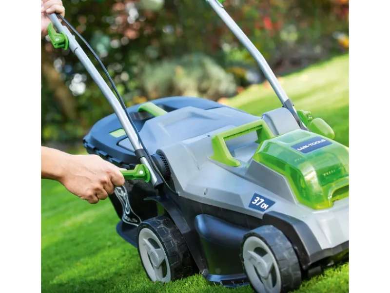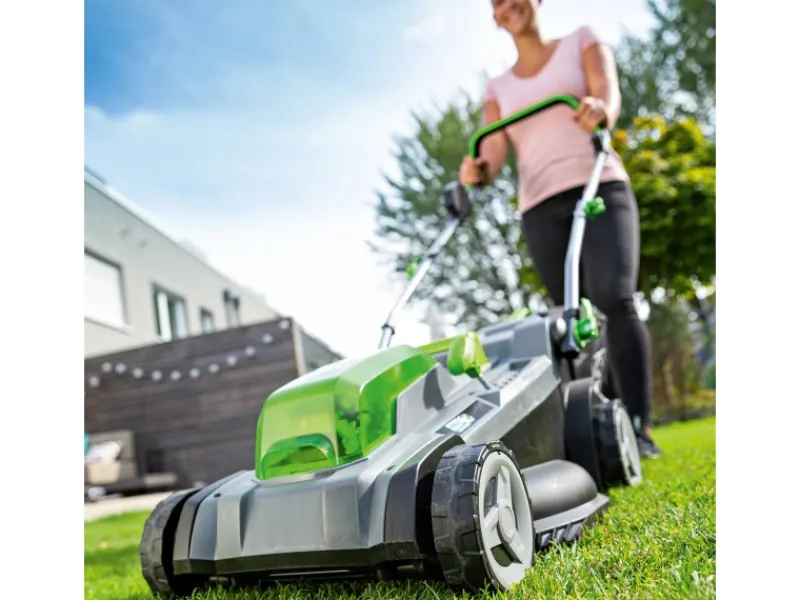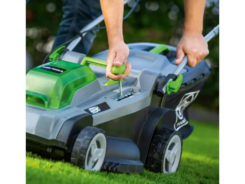 Mit einer Schnittbreite von 37 cm ist der Rasenmäher für eine Fläche bis 450 m² zu empfehlen. Sie können die zentral verstellbare Schnitthöhe unkompliziert 6-fach zwischen 25 mm und 75 mm einstellen.