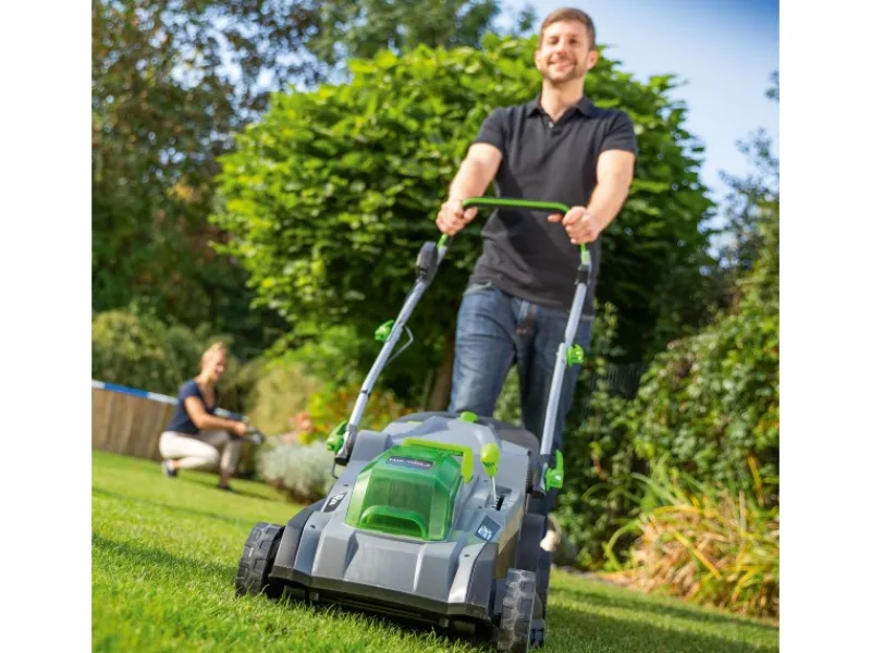 Mit dem LUX-TOOLS Akku-Rasenmäher-Set A-RM-2×20/37 kürzen und pflegen Sie Ihren Rasen optimal. Ausgestattet mit einem robusten und dennoch leichten Kunststoffgehäuse und dank seiner modernen Technik sorgt der Rasenmäher für gepflegte und akkurat gestutzte Grünflächen. Lästiges Kabelgewirr entfällt und das Gerät bietet Ihnen unbeschwerte Bewegungsfreiheit.