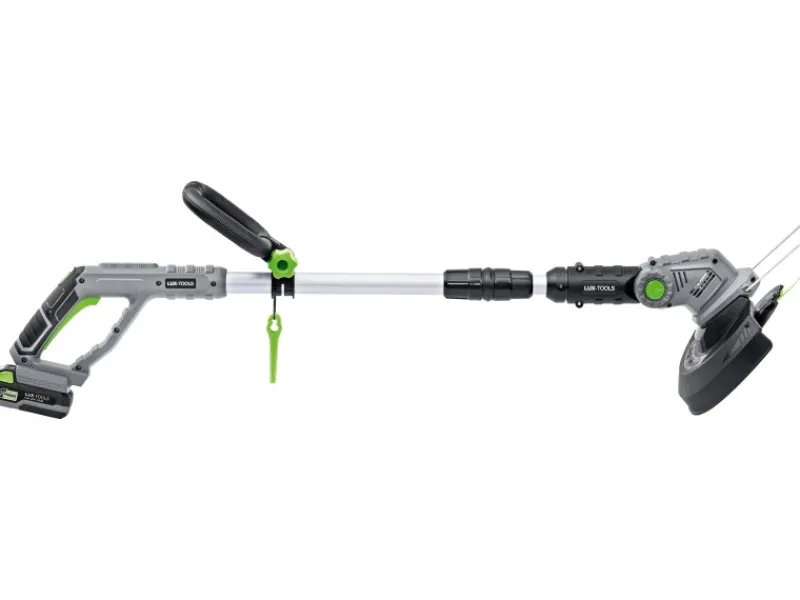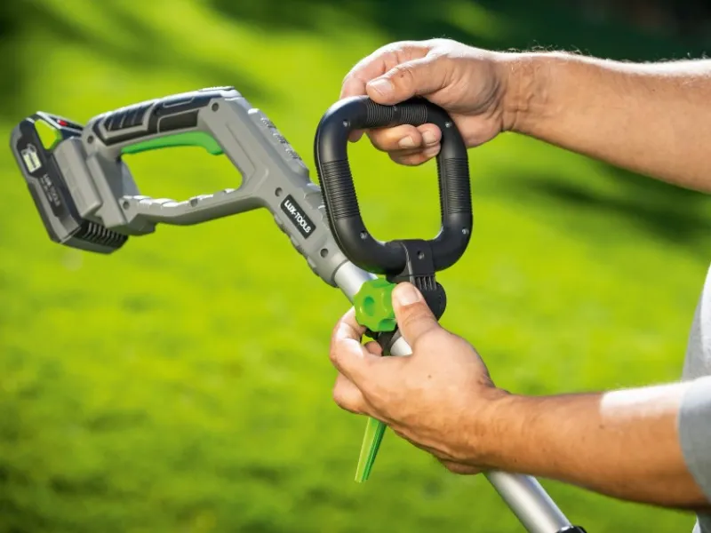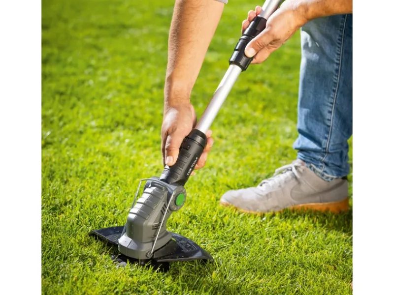 Zusätzlich ist der Akkutrimmer teleskopierbar. Durch diese bequeme Höhenverstellung lassen sich körperliche Größenunterschiede ausgleichen. Ein weiteres Feature ist der Zusatzhandgriff, der Ihnen ein das Führen mit zwei Händen erlaubt und ein komfortables Arbeiten unterstützt.