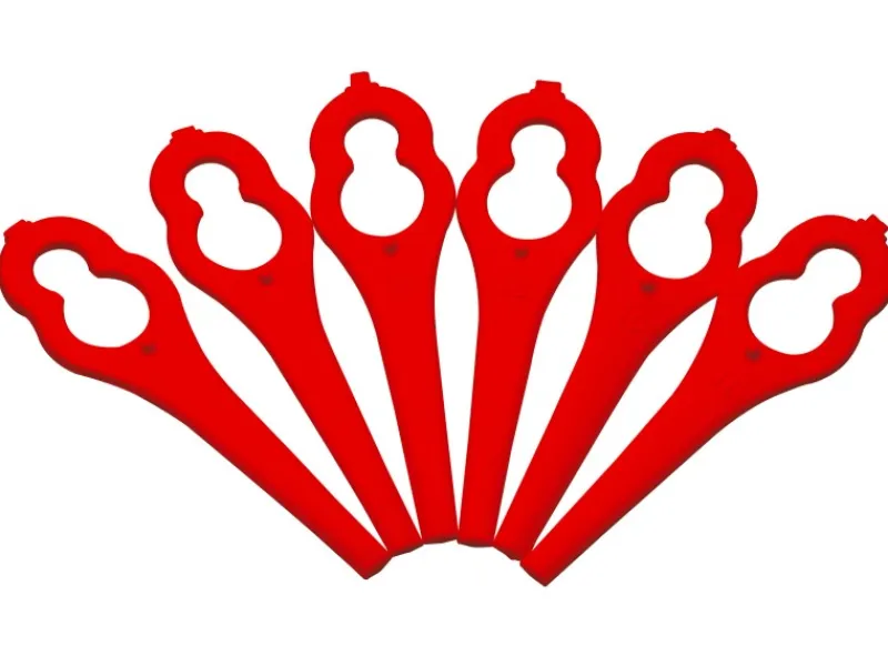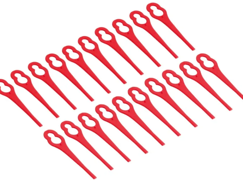 Der Austausch erfolgt, indem Sie die benutzten Messer aus der Schneidplatte herauslösen und die gewünschte Anzahl an Ersatzmessern einsetzen und fixieren. Die exakte und sichere Vorgehensweise entnehmen Sie der Bedienungsanleitung Ihres Rasentrimmers. Der Schnittkreis beträgt 26 cm.