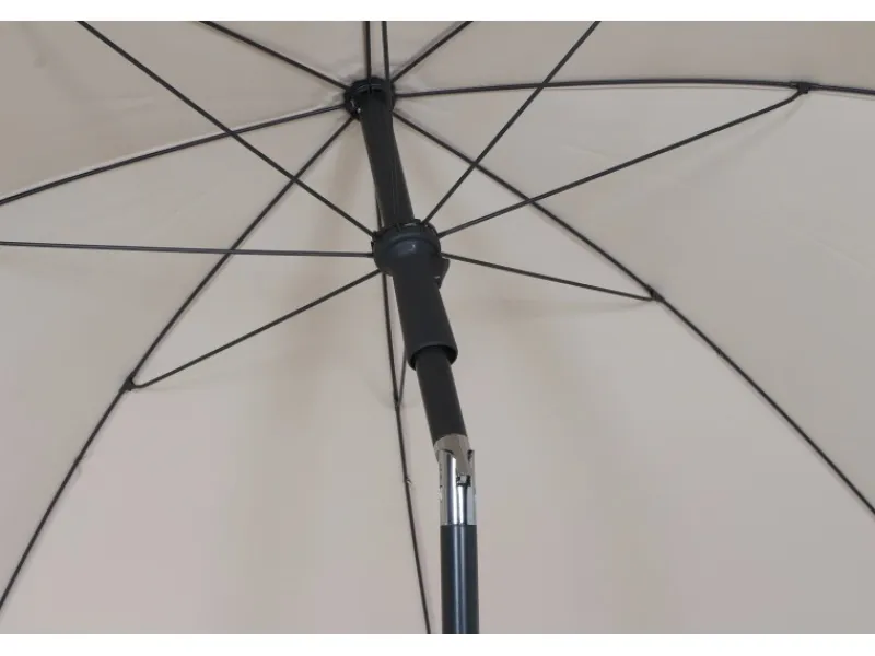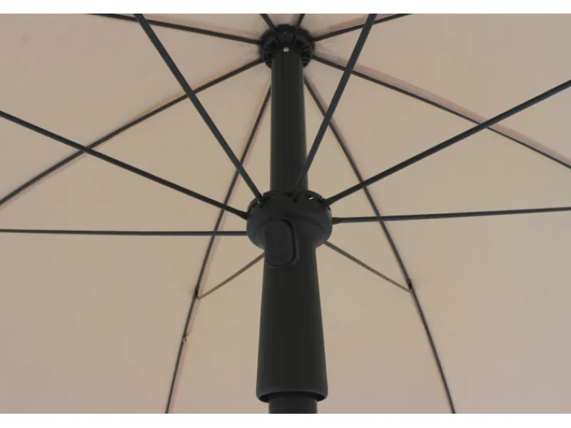 Mittels eines Schiebers lässt sich der Schirm bequem öffnen und schließen. Aufgespannt besitzt er einen Ø von 180 cm. Mithilfe der Knick- bzw. Neigungsfunktion kannst du den Schirm auch bei niedrigem Sonnenstand morgens und abends perfekt für einen idealen Schattenplatz ausrichten. Die maximale Höhe des Sonnenschirms beträgt 200 cm.