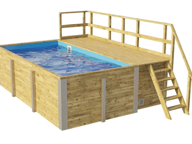 Inklusive Sonnendeck mit integriertem Technik- und Lagerraum mit Belüftunsgitter