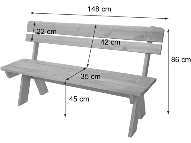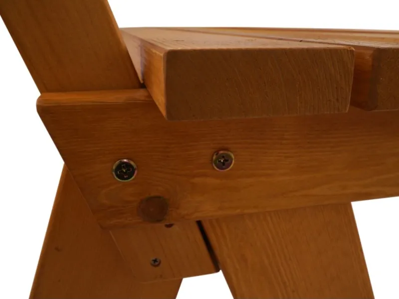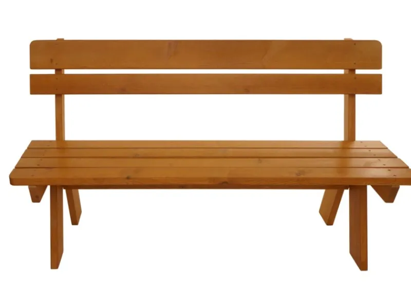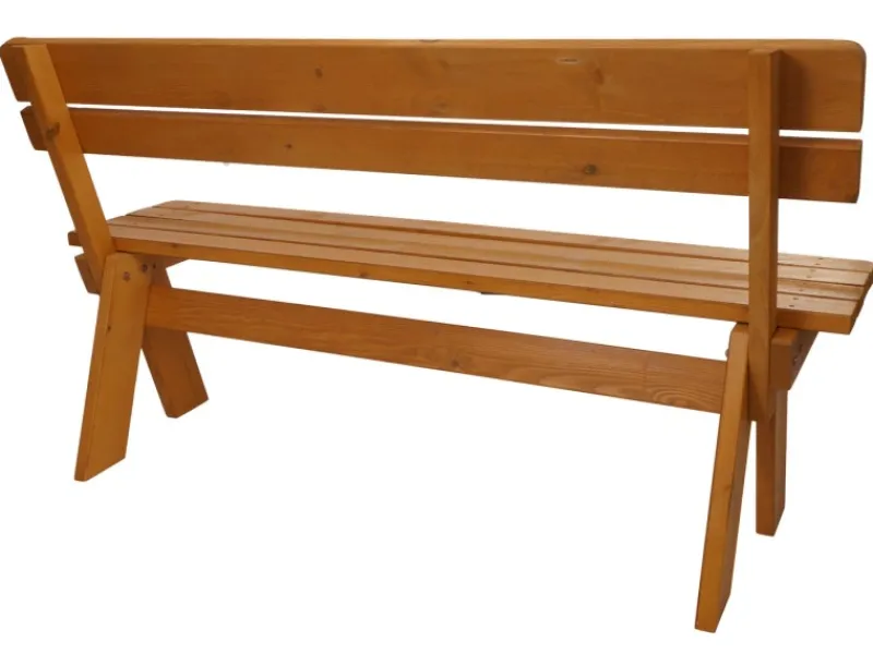 – Aus massiven Kieferholz bietet die Holzbank eine robuste und stabile Konstruktion, bei der sich die Sitzfläche, auch bei starker Belastung, nicht durchbiegt. Eine Bank also, die für den Einsatz in der Gastronomie und öffentliche Bereiche geeignet ist.