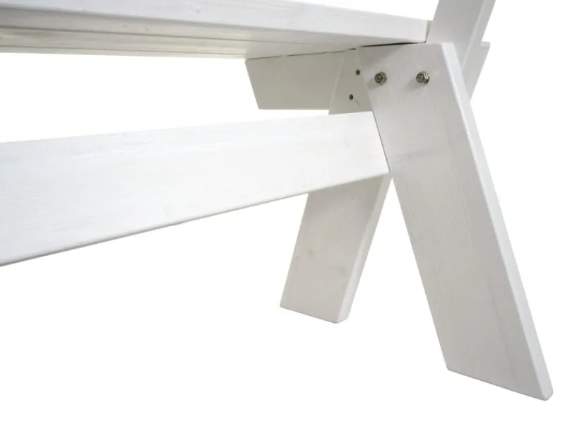 – Aus massiven Kieferholz bietet die Holzbank eine robuste und stabile Konstruktion, bei der sich die Sitzfläche, auch bei starker Belastung, nicht durchbiegt. Eine Bank also, die für den Einsatz in der Gastronomie und öffentliche Bereiche geeignet ist.