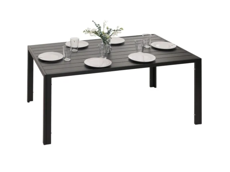 – Dieser schicke Esstisch ist nicht nur optisch ansprechend, sondern überzeugt besonders durch seine Langlebigkeit. Dank dem witterungsbeständigen und pflegeleichtem Aluminium ist dieser Tisch bestens für den Außeneinsatz geeignet.