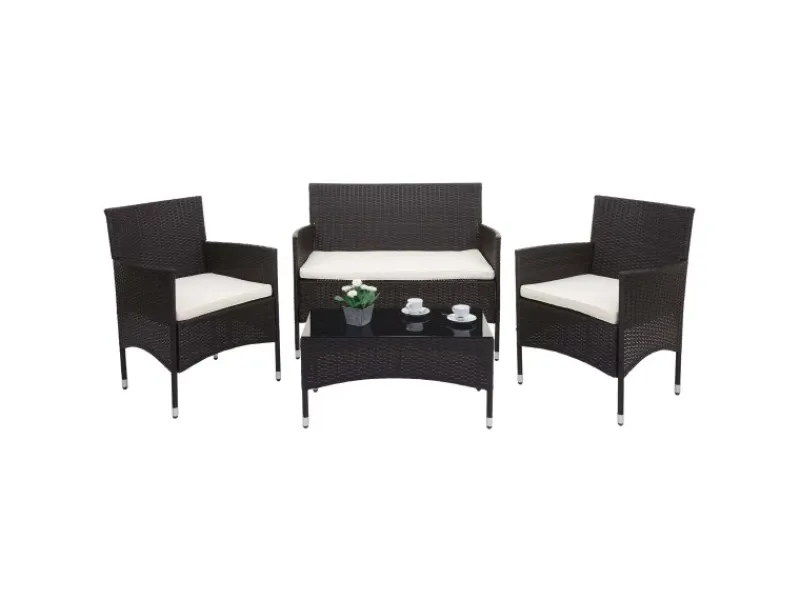 Diese Sitzgarnitur fügt sich durch ihr schlichtes Design nahtlos in jede Umgebung ein und sieht immer aus, als würde sie genau dort hingehören. Durch die Farbkombination der Sitzpolster und des Poly-Rattans, erscheint die Sitzgarnitur in einem ganz besonderen Licht und sorgt somit für ein geschmackvoll abgerundetes Gesamtbild. Alles was Sie zum Entspannen benötigen, kann auf dem Tisch abgelegt werden. Egal ob Prospekte, Sonnencreme, Getränke oder Snacks.
