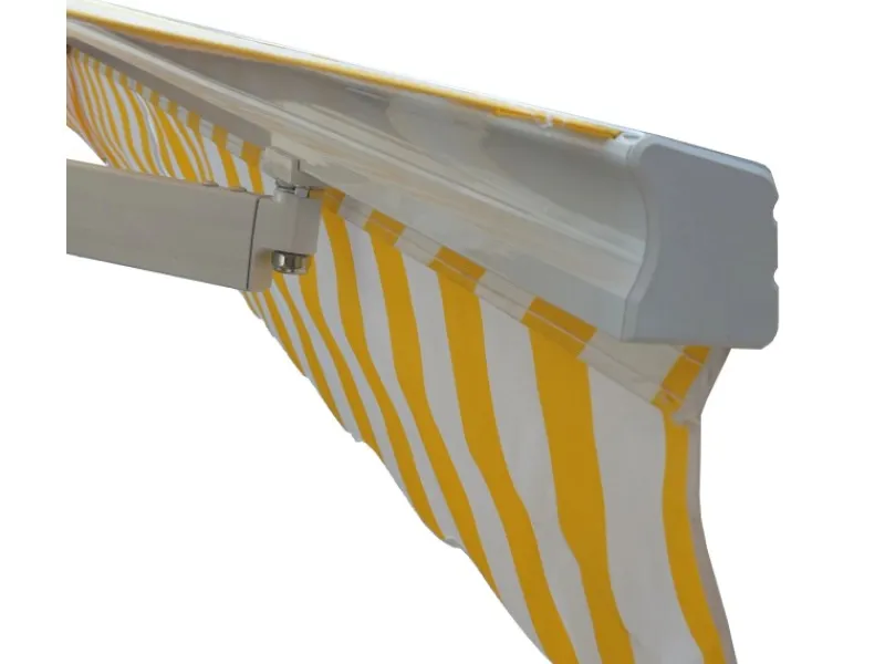 Diese Markise wird mit der mitgelieferten Handkurbel aus- und wieder eingefahren. Der große Vorteil: Es wird NIE einen Motorschaden geben. Damit das Öffnen und Schließen besonders leichtgängig ist, wurde eine Getriebebox verbaut, welche die Markise ohne große Kraftanstrengung öffnet und schließt. Das Getriebe ist durch ein Gehäuse komplett geschützt und trägt so zu einer langen Lebensdauer bei. Für Stabilität und Robustheit sorgen die Markisenarme aus hochwertigem Aluminium sowie die Wandhalterungen und Befestigungen aus pulverbeschichtetem Stahl. Der zwischen 0 – 45° stufenlos verstellbare Neigungswinkel macht Ihre Markise maximal flexibel und sorgt für den größtmöglichen Schatten.