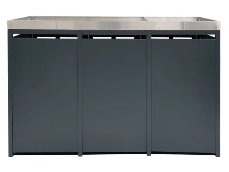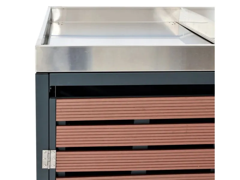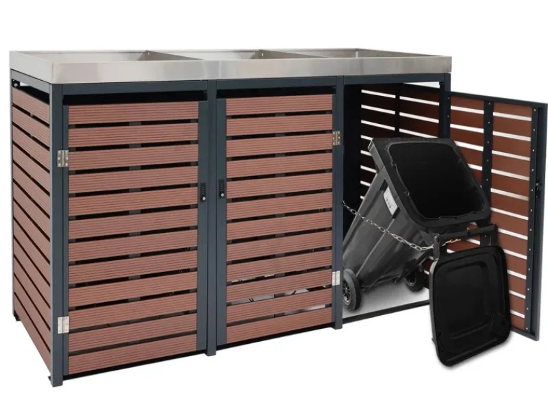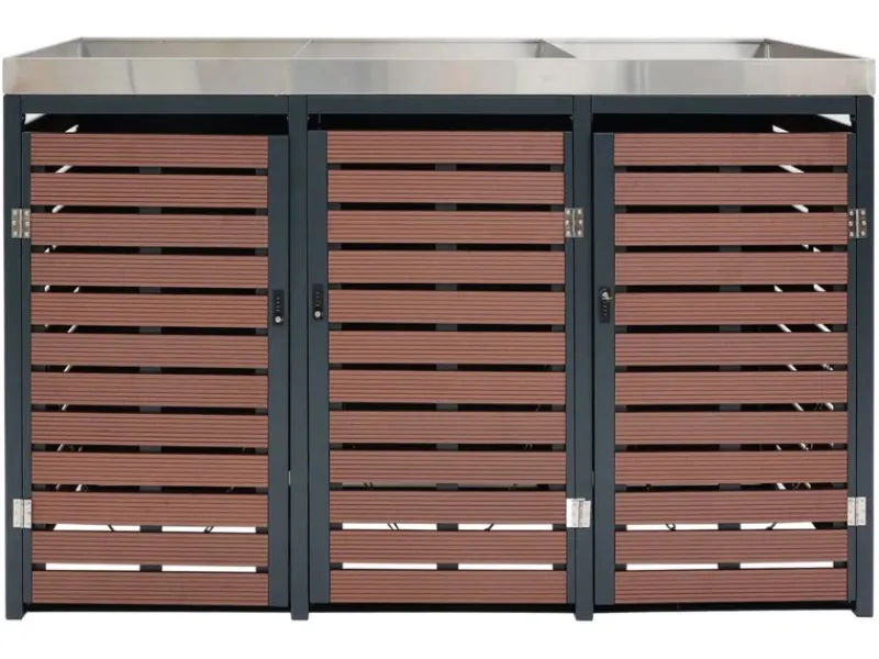 – Diese moderne Mülltonnenverkleidung mit Pflanzkasten ist nicht nur optisch ansprechend. Neben den abschließbaren Türen und dem stabilen Gehäuse, ist der Pflanzkasten mit Ablauflöchern für überflüssiges Wasser ausgestattet.