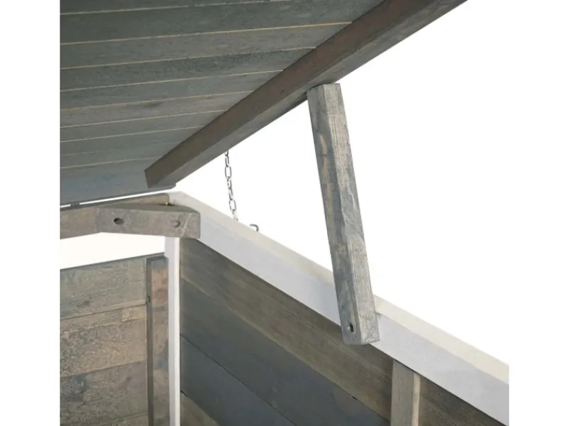 – Dieser Mülltonnenschrank aus Tannenholz ist nicht nur optisch ansprechend. Neben der Schließfunktion durch Riegelschlösser, ist der Deckel dieser Mülltonnenverkleidung mit einer Halterung ausgestattet, wodurch leichtes Befüllen von oben garantiert wird.
