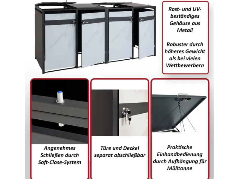 – Für vier Mülltonnen mit 80 bis 240 Liter Fassungsvermögen