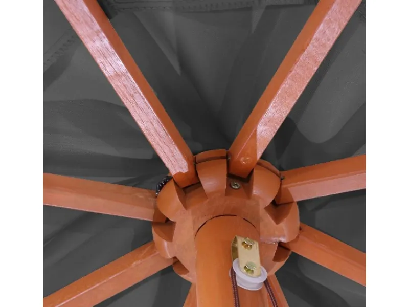 Es besteht – wie bei allen Schirmen – die Gefahr, dass die Holzstreben sich verkeilt haben. In diesem Fall bitte vor dem Öffnen unter den Schirm greifen und die Holzstreben wieder korrekt anordnen. Im Anschluss lässt sich der Schirm leicht entfalten.