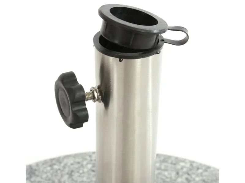 Auf den ersten Blick mag dieser massive Schirmständer wirken, wie jeder andere Schirmständer auch, doch auf den zweiten Blick wird klar, dass es sich hierbei nicht um ein 08/15-Produkt handelt. Die polierte, marmorierte Granitoberfläche sieht nicht nur einfach gut aus und ist kratzfest und pflegeleicht, nein, Sie tarnt auch die beeindruckende Funktionalität dieses Ständers, die sich eigentlich nicht verstecken muss.