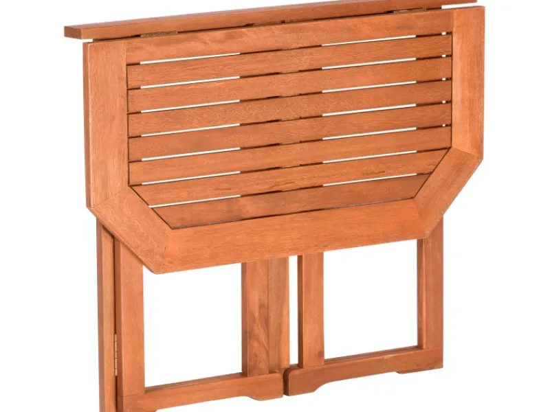 Der Klapptisch besteht aus geöltem, FSC®-zertifiziertem Eukalyptus-Holz und verfügt über die Maße (H x B x T) von 74 cm x 90 cm x 50 cm.