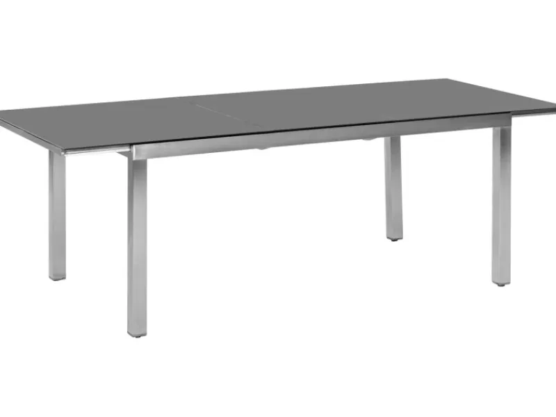 Mit einem Gestell aus Edelstahl ist der Tisch besonders robust und rustikal. Die Tischplatte aus Glas rundet das Gesamtbild ab. Durch das robuste Gestell aus Edelstahl kann der Tisch bedenkenlos im Außenbereich positioniert werden.