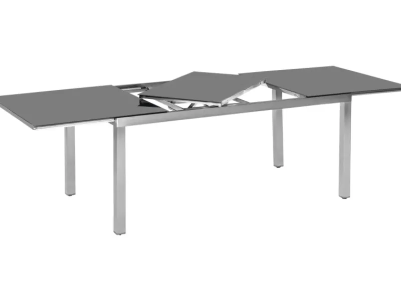 Der Tisch verfügt über eine integrierte Verlängerungstischplatte, die im eingezogenen Zustand einfach unter dem Tisch untergebracht ist. Somit ist der Tisch auf 240 cm verlängerbar und es können noch mehr Personen am Tisch Platz finden. In wenigen Handgriffen kann der Tisch einfach wieder platzsparend zusammengeschoben werden.