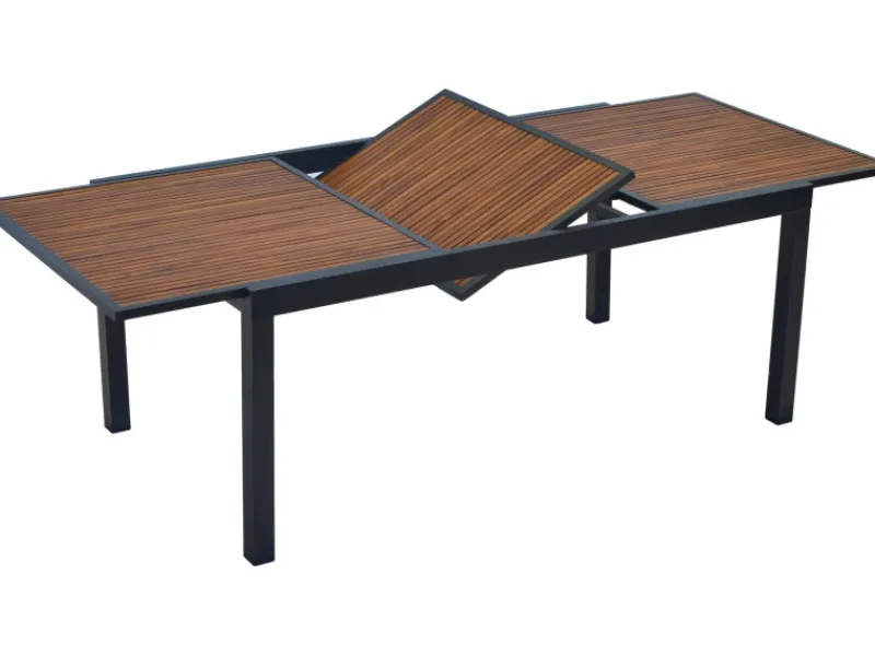 Für einen hohen Sitzkomfort sind ist die Sitz- und Rückenfläche des Gartensessels gepaddelt. Die Applikationen aus Akazienholz an den Armlehnen verleihen dem Sessel eine moderne Optik. Ergänzt wird das Set durch einen Ausziehtisch mit den Grundmaßen von 180 cm x 100 cm. Bei Bedarf lässt sich der Tisch auf eine Länge von 240 cm ausziehen.