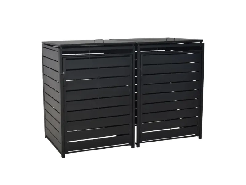 Dieses Set besteht aus dem Basismodel und einer Erweiterung und bietet so Platz für 2 Mülltonnen. Durch eine weitere Erweiterung lässt sich das Set beliebig erweitern.