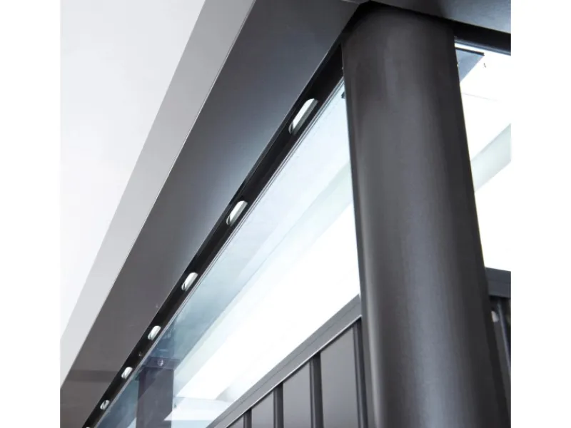 Moderne Oberlichter aus Acrylglas sorgen für ausreichenden Lichteinfall. Integrierte Ventilationsschlitze dienen zur Belüftung. Die großzügige Doppeltür ermöglicht das bequeme Betreten auch mit größerem Gerät. Die Tür verfügt über eine modernen Edelstahl-Drückergarnitur und ist mit einer robusten Dreifach-Verriegelung gegen abschließbar. Das Öffnen und Schließen der Tür wird mittels Gasdruckfeder erleichtert. Die seitlich angebrachten Dachrinnen verfügen über einen 5/4″-Gartenschlauchanschluss und integrierten Laubfänger.