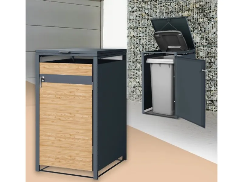 Mülltonnen im Eingangsbereich machen oftmals keine schöne Figur. Mit den praktischen Mülltonnenboxen hast du eine smarte und komfortable Lösung, die unschönen Mülltonnen verschwinden zu lassen. Die Mülltonnenboxen sorgen für Ordnung und bieten zusätzlich noch Schutz vor Fremdeinflüssen. Es passen alle gängigen Mülltonnen von 60 Liter, 120 Liter oder 240 Liter.