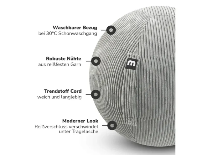 Der Sitzball mit Stoffhülle ist vielfältig einsetzbar – ob als Alternative zum Bürostuhl, die rückenschonendes Arbeiten fördert, als Balanceball oder während der Schwangerschaft.