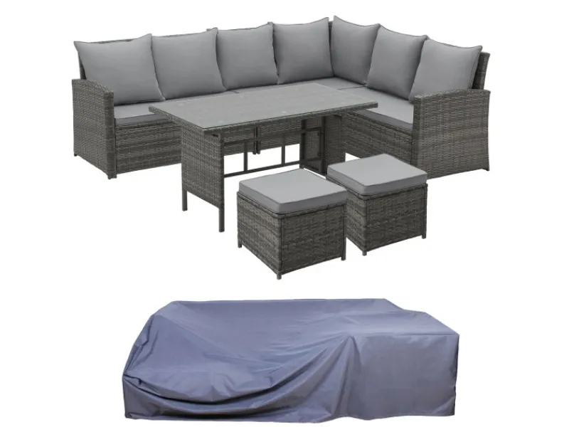 Damit Sie lange Zeit Freude an der Sitzgruppe haben, schützen Sie diese bitte mit der im Set enthaltenen Abdeckhaube vor Wettereinflüssen.