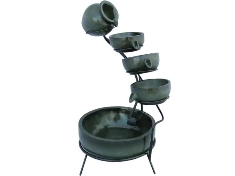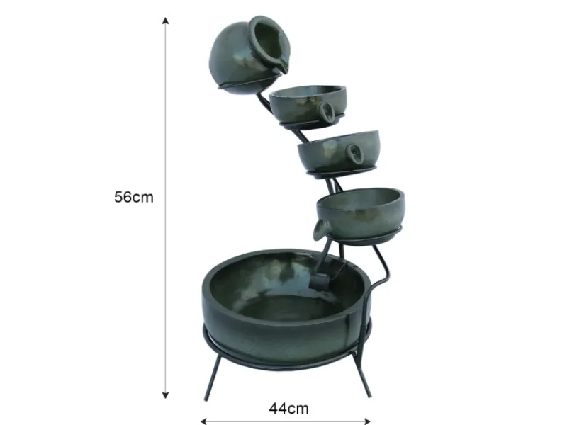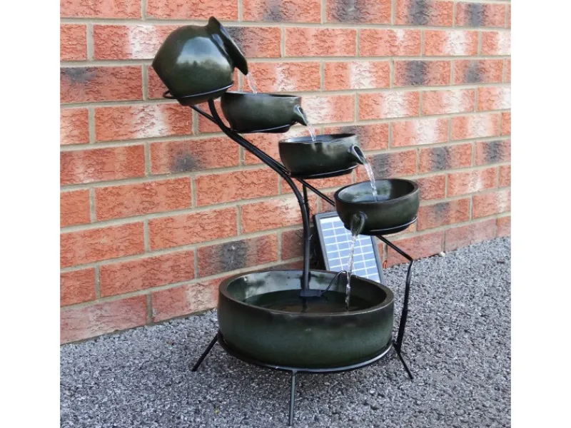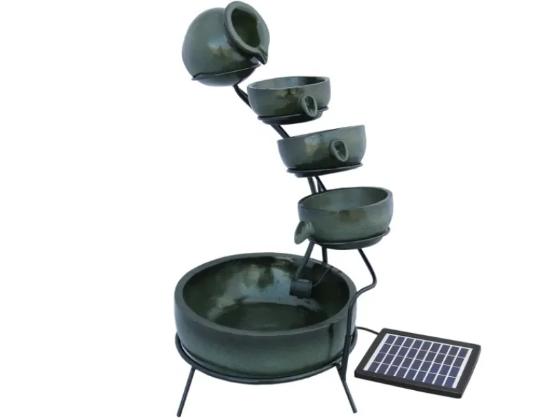 Das Wasserspiel ist aus strapazierfähigem Harz gefertigt und ist witterungsbeständig.Dank des 7m langen Stromkabels können Sie Ihr Solarpanel nach Wunsch platzieren.Dieses Wasserspiel ist auch für Tage, an denen die Sonne nicht so kräftig scheint, da die Notstrombatterie Ihr Wasserspiel nach Sonnenuntergang oder bei Bewölkung bis zu 6 Stunden mit Strom versorgt (abhängig von der Sonneneinstrahlung).Merkmale:– Notstrombatterie mit einer Betriebsdauer von ca. 6 Std (ohne Sonnenlicht)- Aus langlebigem und wetterfestem Harz- Beeindruckendes 7m Stromkabel- GRATIS Erdspieß für das SolarmodulSpezifikationen:– CE-geprüft- Pumpe: 100-350L/H- Stromquelle: Solarbetrieben- Länge des Stromkabels: 7m- Material: Kunstharz- Leistung: 2.8W- Spannung: 8V- Ständer Material: Pulverbeschichtetes Eisen- Farbe: Grün- 56cm H x 44cm L x 50cm B / 5,5kg