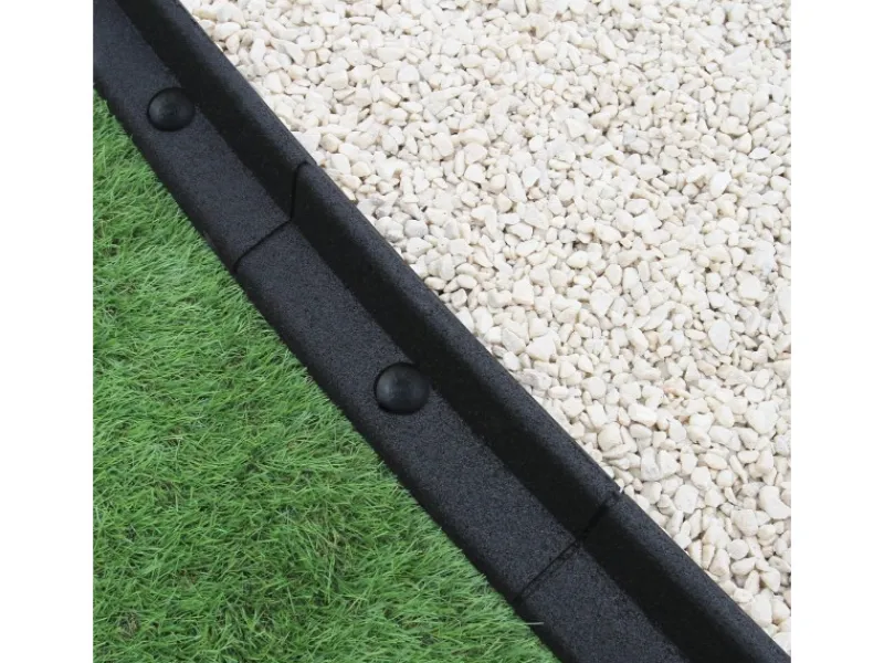 Mit einer Flexibilität von bis zu 70 Grad passt sich unsere Rasenkante fast jeder Kurve an und sorgt so für eine schön natürlich aussehende Landschaft.Diese Rasenkante ist wetterfest und UV-beständig und somit für jedes Wetter geeignet. Zudem ist diese rasenmäherfreundlich und sicher, in der Nähe von Kindern zu verwenden.Mit den mitgelieferten Nägeln und Stiften können Sie die Einfassung schnell und einfach befestigen. Merkmale:Flexible Rasenkante bis zu 70 Grad biegbarErhältlich in Schwarz, Grau, Grün, Terracotta, BraunMit einer Länge von 1,2m ist diese Rasenkante besonders langRasenmäher- und kinderfreundlichWetterfest und UV-beständigSchnell und einfach zu verlegen Spezifikationen pro Stück:Material der Einfassung: UV-beständiger GummiMaterial der Nägel und Stifte: KunststoffFarbe: SchwarzGewicht: 3,4 kgMaße: 8,1cm H x 120cm L x 8,1cm B
