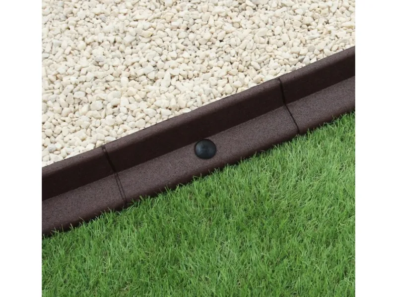 Mit einer Flexibilität von bis zu 70 Grad passt sich unsere Rasenkante fast jeder Kurve an und sorgt so für eine schön natürlich aussehende Landschaft.Diese Rasenkante ist wetterfest und UV-beständig und somit für jedes Wetter geeignet. Zudem ist diese rasenmäherfreundlich und sicher, in der Nähe von Kindern zu verwenden.Mit den mitgelieferten Nägeln und Stiften können Sie die Einfassung schnell und einfach befestigen. Merkmale:Flexible Rasenkante bis zu 70 Grad biegbarErhältlich in Schwarz, Grau, Grün, Terracotta, BraunMit einer Länge von 1,2m ist diese Rasenkante besonders langRasenmäher- und kinderfreundlichWetterfest und UV-beständigSchnell und einfach zu verlegen Spezifikationen pro Stück:Material der Einfassung: UV-beständiger GummiMaterial der Nägel und Stifte: KunststoffFarbe: SchwarzGewicht: 3,4 kgMaße: 8,1cm H x 120cm L x 8,1cm B