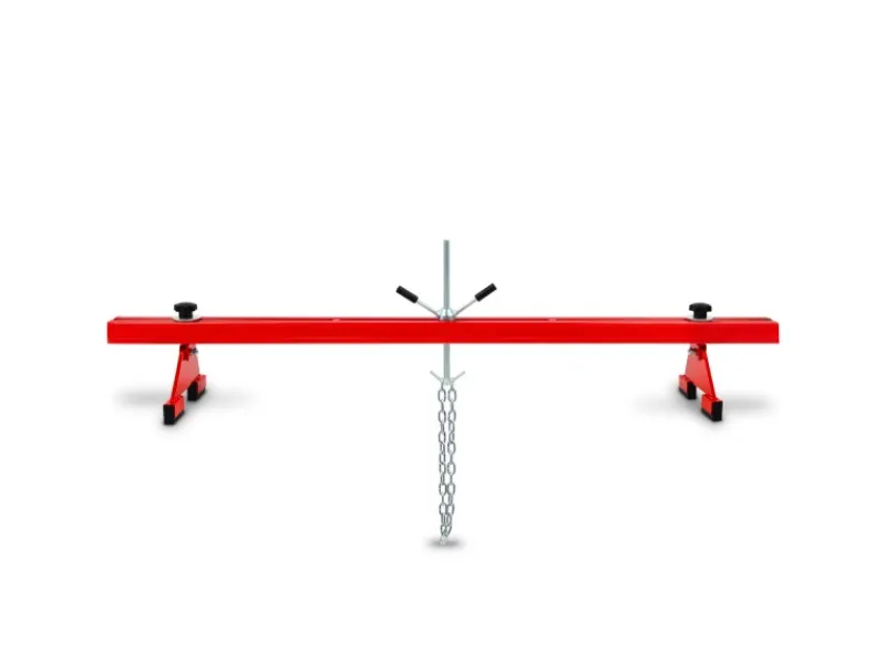 Die Motortraverse hat eine Größe von 150 x 7 x 5 cm und kann bei fast allen Fahrzeugen verwendet werden. Ausgestattet mit einer Kette mit einer Länge von 102 cm kann die Motorbrücke bis zu 500 kg tragen. Die Füße sind rutschfest, um die Sicherheit zu erhöhen.