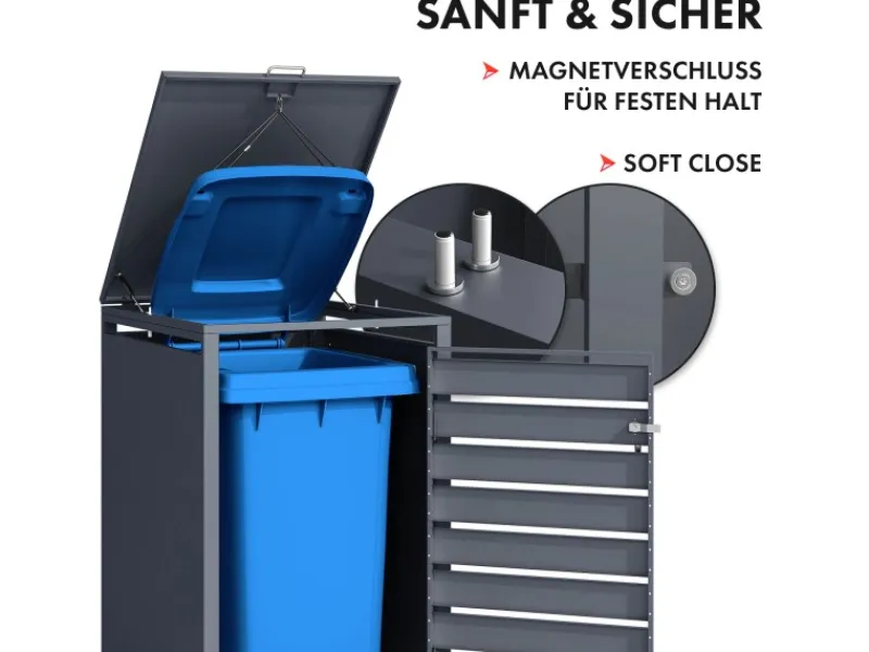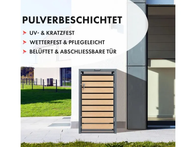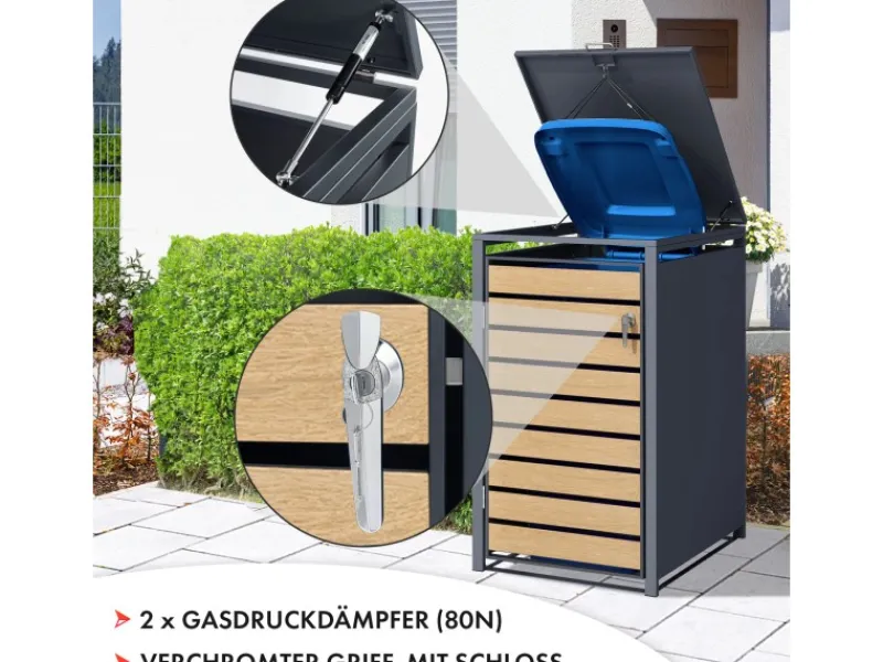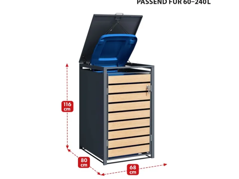 Mülltonnenbox Johan Edelstahlrahmen und Holzdekor 68 x 80 x 116 cm 1 Tür*Karat