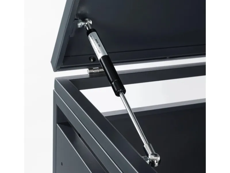 Dank der Gasdruckfedern ist das Öffnen und Schließen des Deckels der Mülltonnenbox ganz einfach. Kein Ärger mehr mit schweren Deckeln oder umständlichen Verschlüssen, sondern eine reibungslose und mühelose Erfahrung. Sie können den Deckel jedes Behälters mühelos einzeln öffnen und schließen. Wenn du die mitgelieferte Kette am Deckel der Tonne befestigst, öffnet er sich auch automatisch mit ihr.