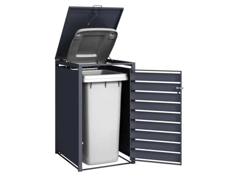 – Mülltonnenbox mit offenem Deckel: 68 cm x 80 cm x 181 cm