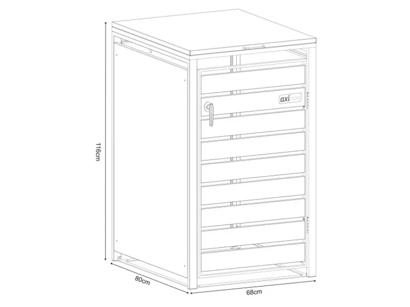 – Mülltonnenbox: 68 cm x 80 cm x 116 cm