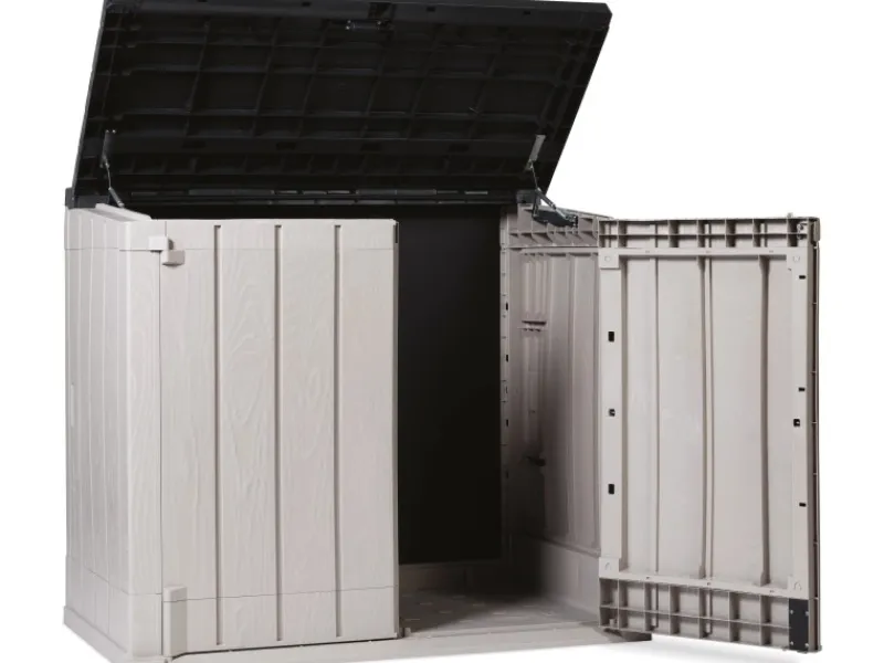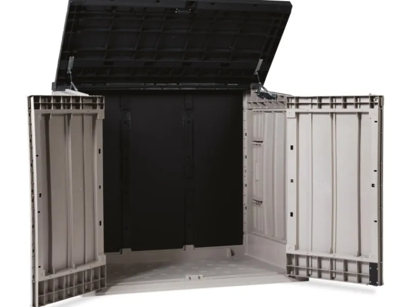 Mit abschließbaren Fronttüren, integrierter Abfalltonnendeckelöffnung und Bodenplatte mit Rampe