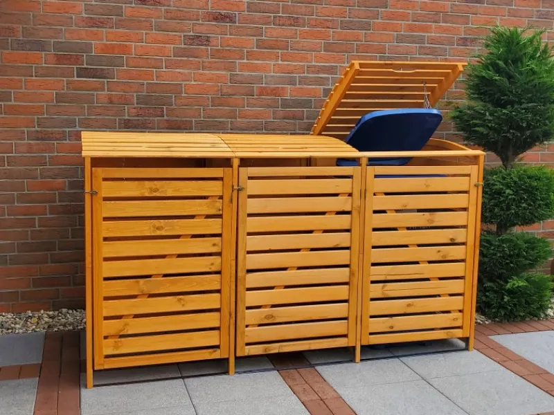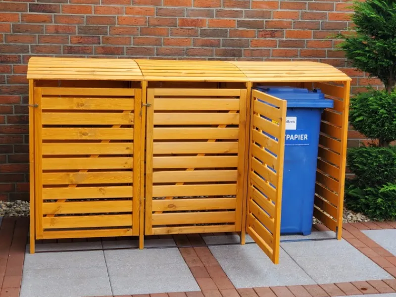 Hochwertige Mülltonnenverkleidung aus massivem Kiefernholz für Tonnen bis 240 l