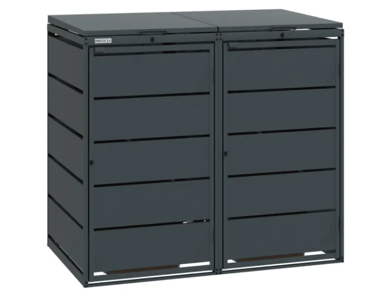 Mülltonnenboxen|MBOX24 Classic Mülltonnenbox für 2 Mülltonnen (240L) aus Verzinktem Stahl 2er Metall Mülltonnenverkleidung in Anthrazit Robust & Wetterfest